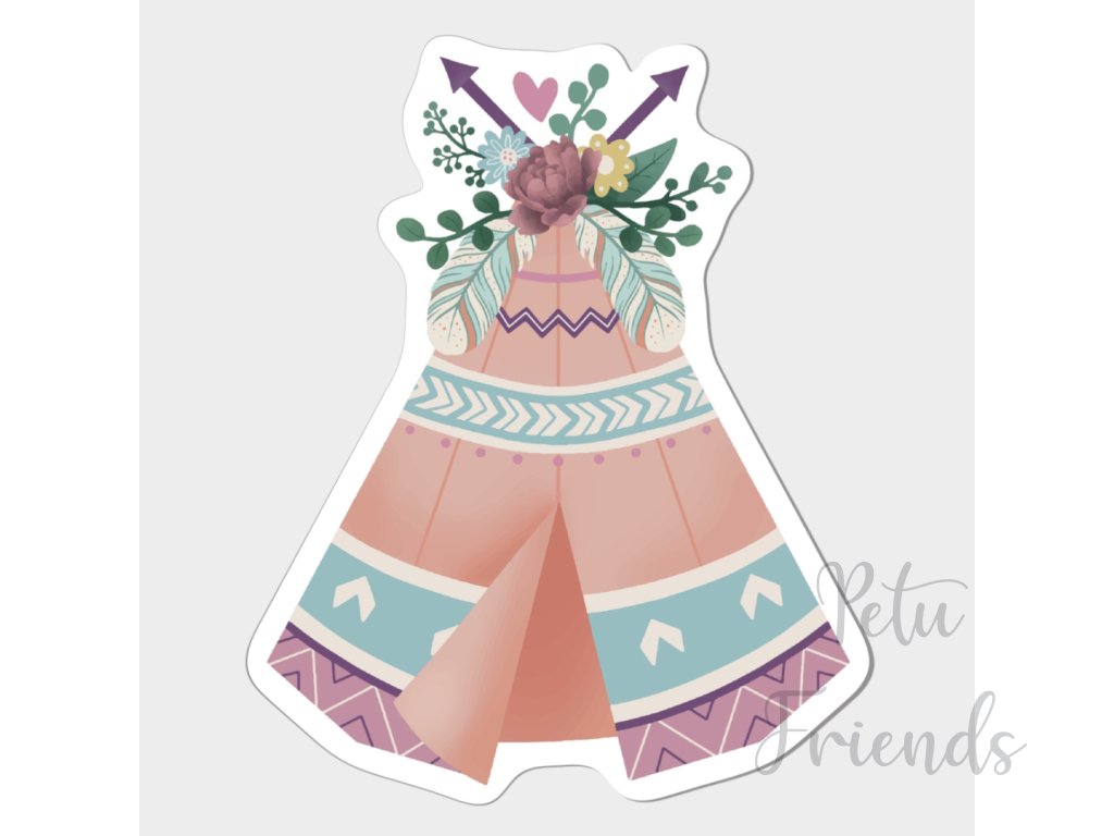 Boho Petu Friends teepee stan je jednokusová papírová samolepka s lesklým povrchem, která rozšiřuje kolekci huňáčci.