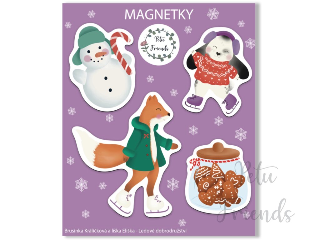 Sada 4 kusů magnetek ze série Brusinka Králíčková a liška Eliška - Ledové dobrodružství