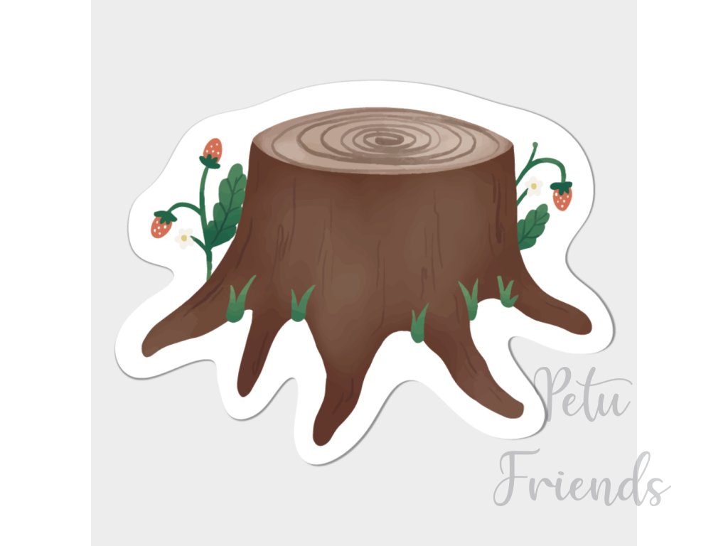 Jednokusová samolepka pařez a jahodičky ze série Na jahodách