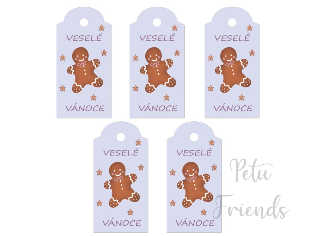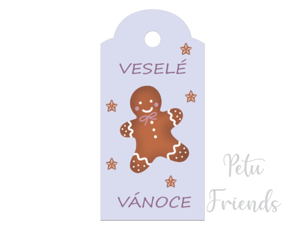 Vánoční visačka na jméno na dárek Veselé Vánoce s perníčkem ze série Ledové dobrodružství