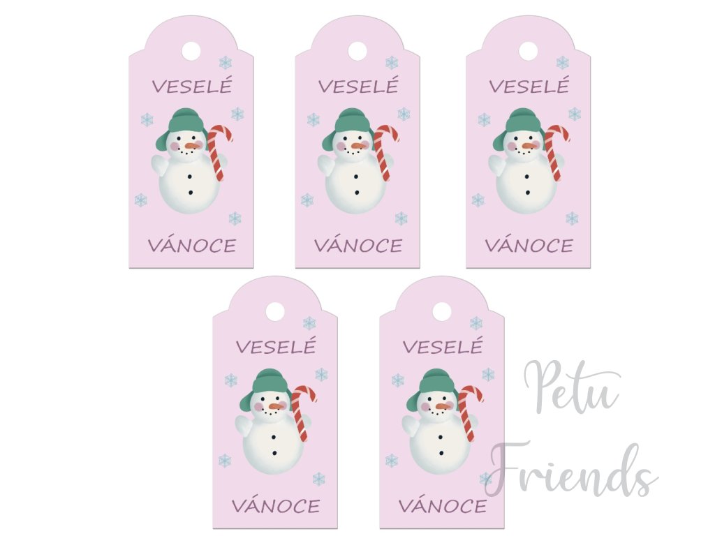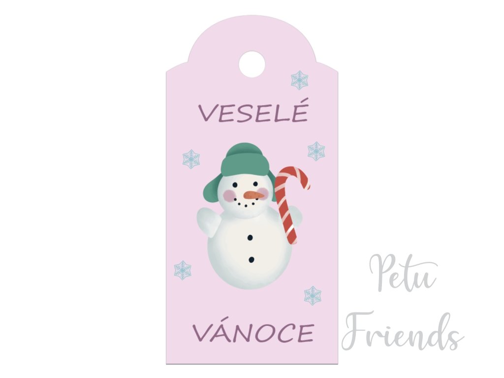 Vánoční visačka na jméno na dárek Veselé Vánoce sněhulák ze série Kouzelné Vánoce